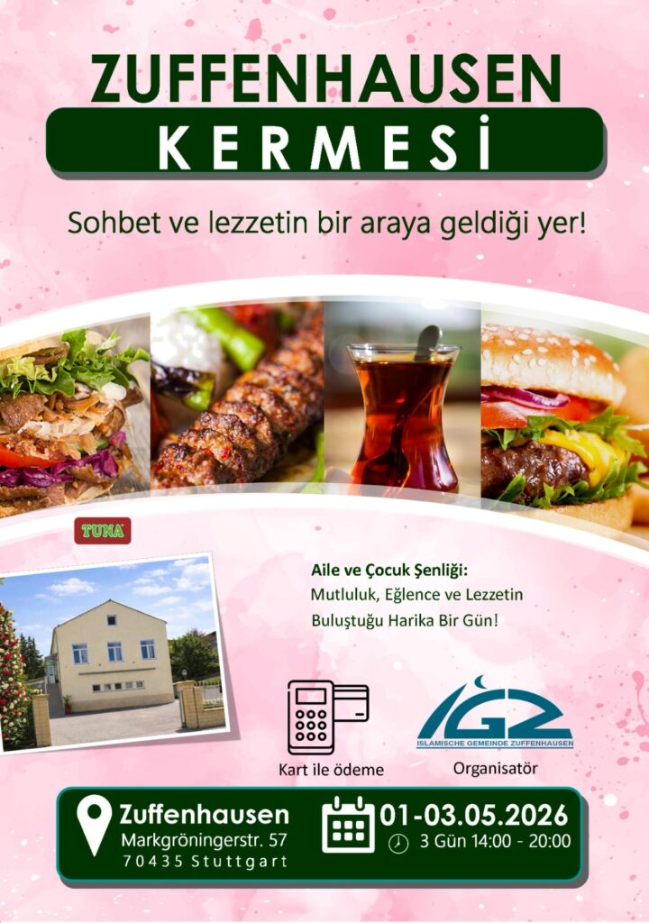 Zuffenhausen Camimizde, Mayıs ayının o güzel ilk haftasında (1-3 Mayıs) gönülleri birleştirmek için bir araya geliyoruz. Sadece bir kermes değil; bir çay eşliğinde hasbihal edeceğimiz, gelişim projelerimizi paylaşacağımız ve samimiyetle mayalanmış bir atmosferde kucaklaşacağımız bu özel günlerde sizleri aramızda görmekten şeref duyarız.